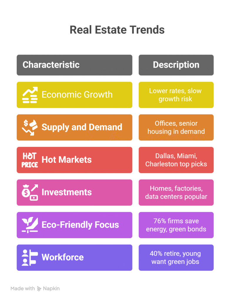 Finally, the industry needs workers. Specifically, 40% may retire soon. For example, young workers want green jobs. However, only 51% know AI. As a result, companies are training staff. Moreover, real estate use AI to work faster. For instance, they analyze data quickly.